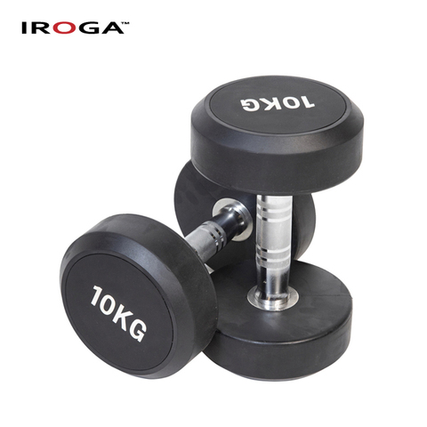 आईरोगा फिटनेस उच्च गुणवत्ता वाले अनुकूलित लोगो राउंड हेड रबर लेपित डम्बल फिक्स्ड बारबेल